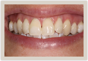 This young mother was very upset with her brown and white surface spots on her teeth. She seeked us out because was told by previous dentist that she would need 6 porcelain veneers to cover the stains which would result in significant tooth removal. This would have cost $6000-9000. she seeked a more conservative, biomimetic, and less costly alternative, Microabasion. No need to numb her as we meticulously removed the surface discolorations with ultrafine daimonds on her 6 front teeth and sealed them at a fraction of the cost of a simple filling (instead of costly veneers). Only one tooth on the far right required a small filling because the discoloration went too deep. The closeup photo demonstrates how the left tooth on the screen was already cleaned up, and the right tooth is cleaned up in the after photo.